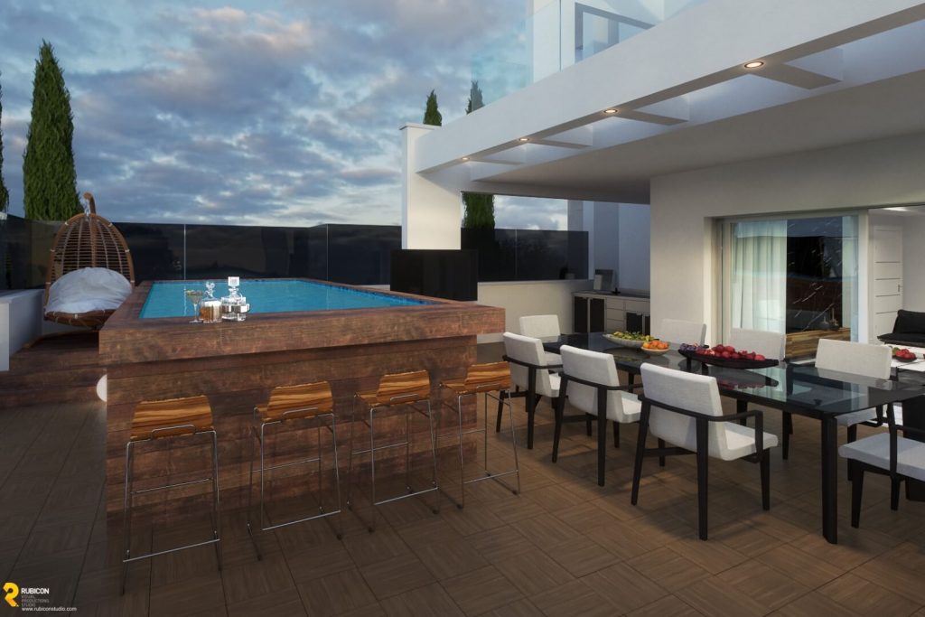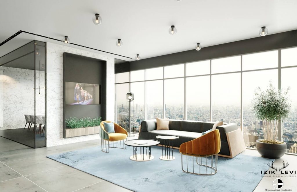 פנטהאוז אשר עוצב בסגנון מודרני עם מרפסת המשקיפה לנוף רחב ידיים.