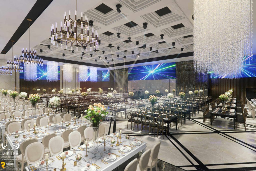 אולם שמחות למגזר החרדי אשר עוצב בקווים נקיים וצורות גאומטריות אשר עוטפות את החלל.