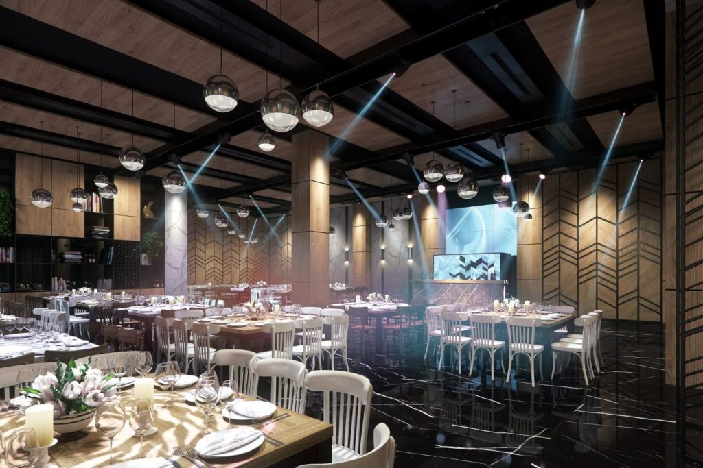 אולם שמחות אשר עוצב בסגנון אורבני , משלב חומרי חיפוי מגוונים ובעל תקרה מרחפת