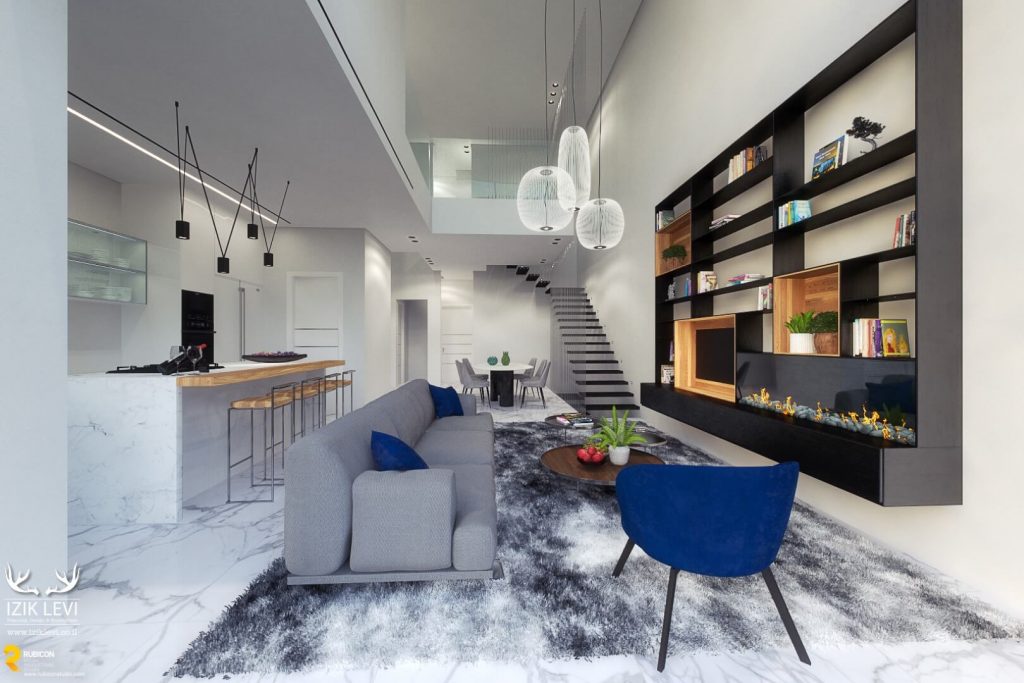 תכנון ועיצוב וילה בסגנון חדשני מודרני . הוילה הינה בעלת קווים נקיים , קורות מרחפות וחומרי גמר קרים.בית פרטי חד משפחתי אשר תוכנן בסגנון מודרני חדשני.חזית הבית בעלת קו נקי , קורות מרחפות וחומרים גמר קרים.הסגנון המודרני הנקי ממשיך לעיצוב פנים הבית ומתייחס לכל חלל בצורה ייחודית בהתאם לשימוש הנדרש תוך שמירה על מכנה משותף.